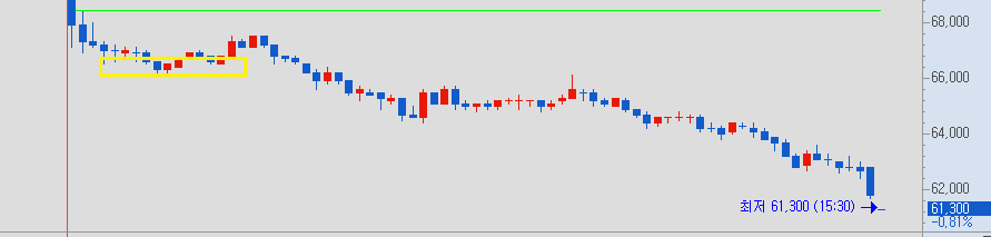 1) 시초가갭하락 급락이 나오며 6만원을 이탈하여
