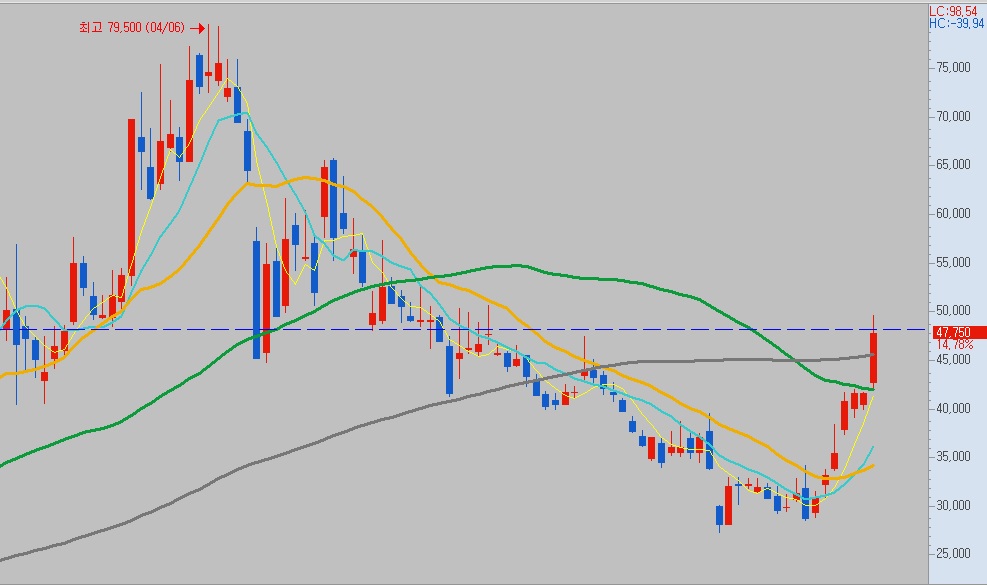 5만원 돌파할때 따라가서 적당한 수익실현으로 나올지?