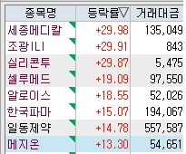 일동제약 > 세종메디칼 > 진원생명과학, 한국비엔씨, 켐온, SK바사