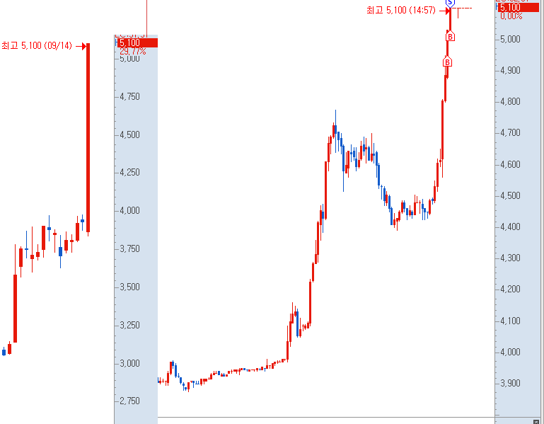 VI와 상한가 가격을 순식간에 찍고 급등했는데
