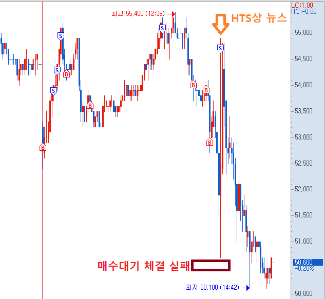 차라리 큰 이슈성 뉴스가 뜨거나 55000원 지지하는거 보고