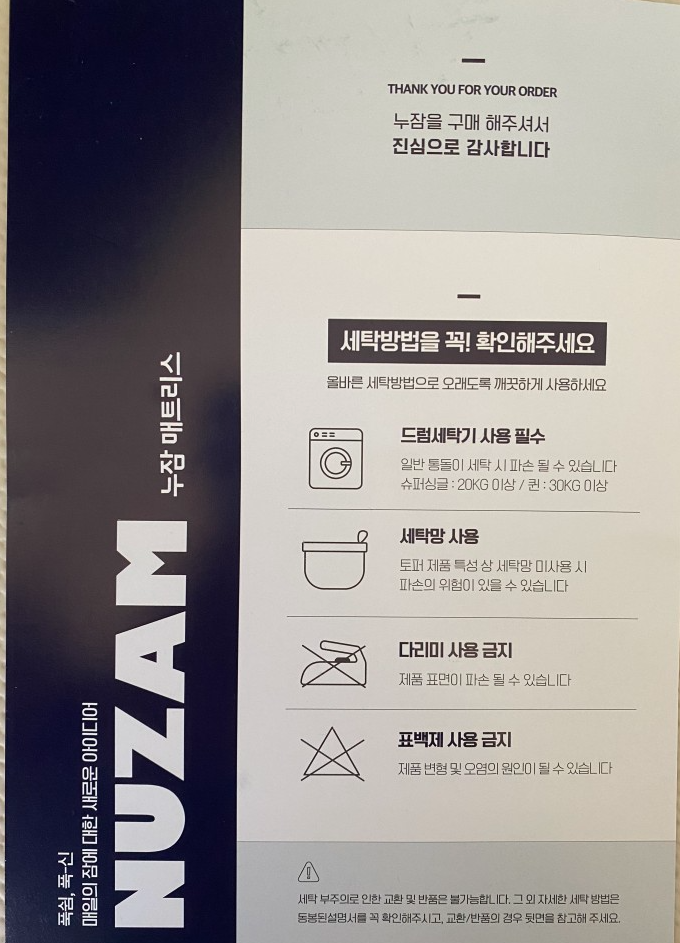누잠 토퍼 매트리스의 세탁방법은