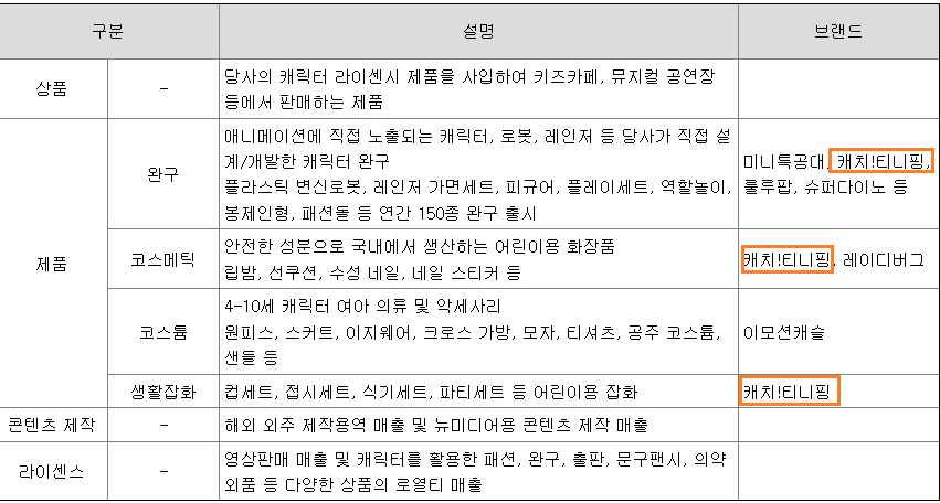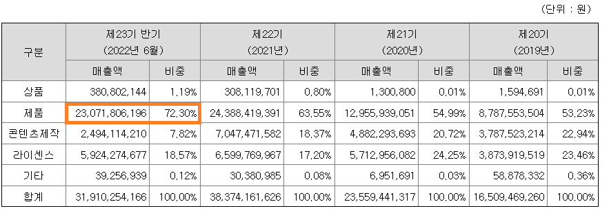 매출비중을 보면 완구, 장남감에서 72%의 압도적인 비중이고